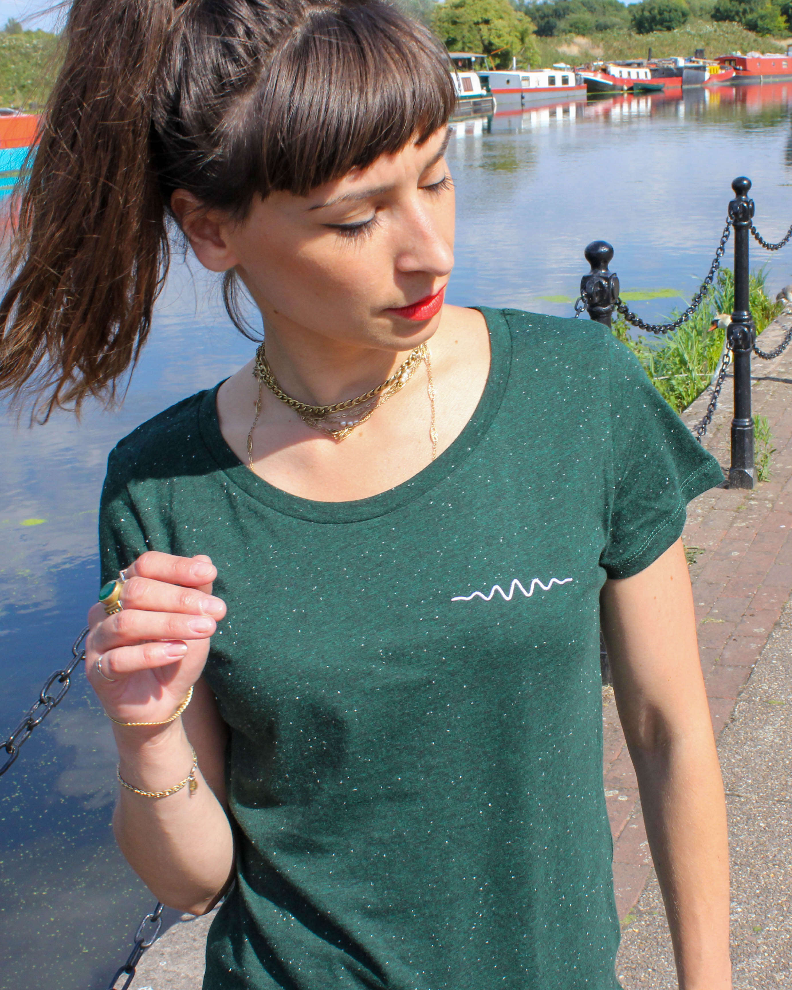 Ripple is a unique, enigmatic addition to your wardrobe. Crafted on a beautiful speckled green organic cotton fabric, this tasteful piece offers a mysterious ripple pattern that captivates the eye.